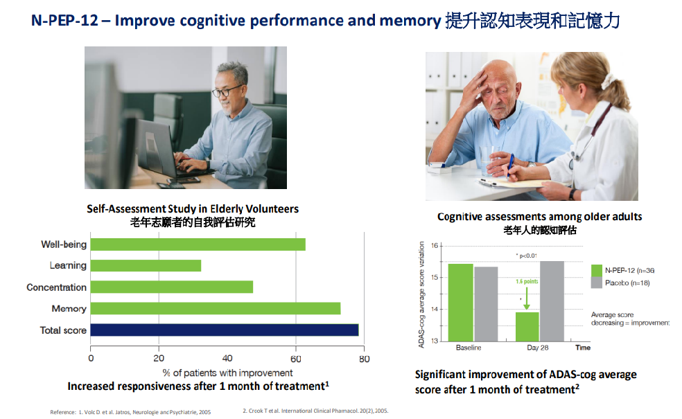 含有專利成分 N-PEP-12(神經肽),臨床證實可激活腦神經細胞
